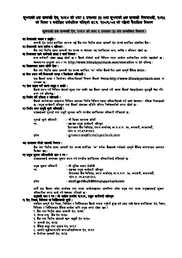 • Share Auction Notice of Unsubscibed Right Share of Himalayan Bank Ltd.