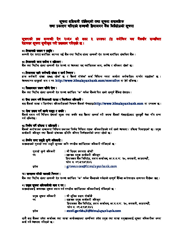 - Disclosure as per NRB